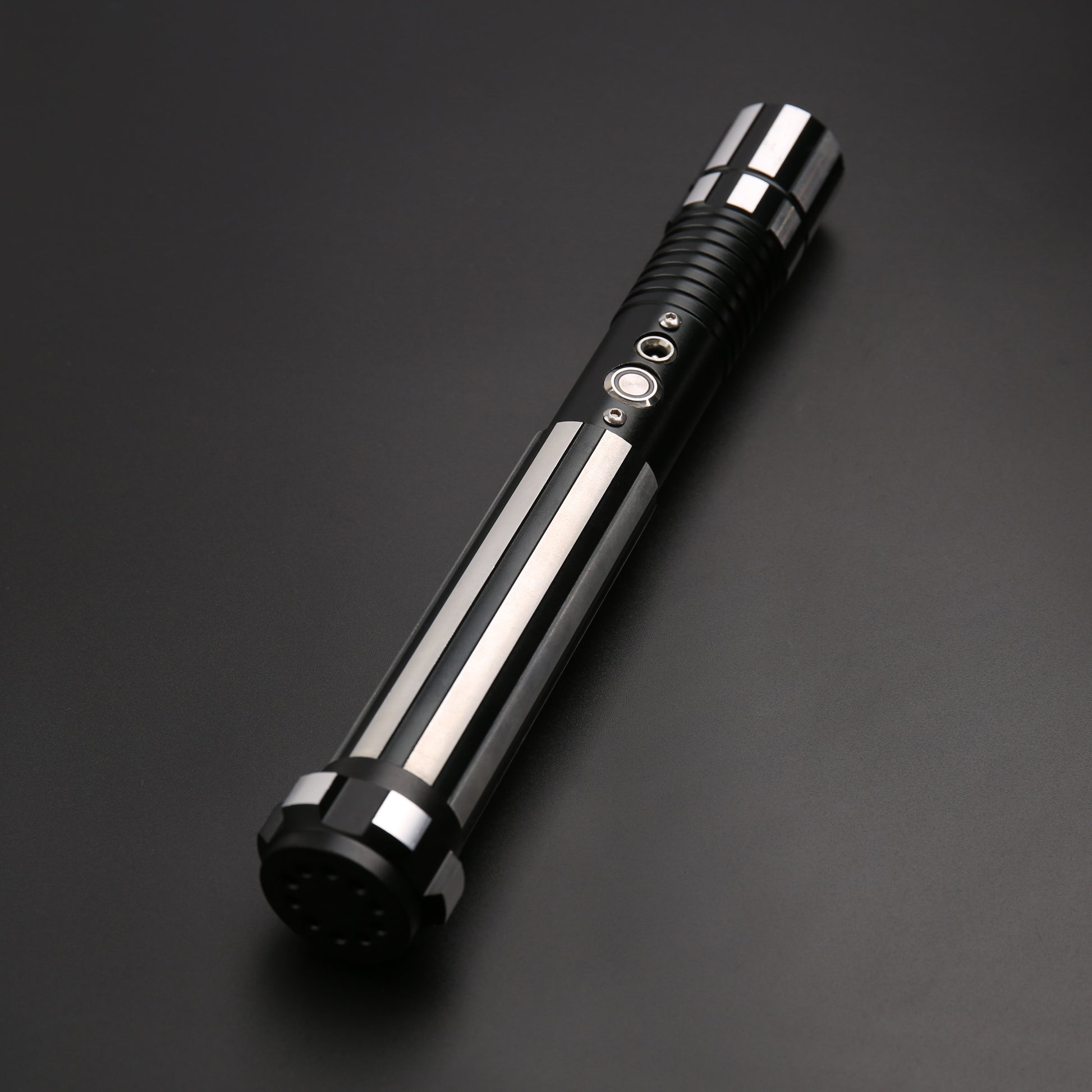 The lightsaber's handle is designed to be particularly durable and conveys a feeling of reliability and power with robust materials and an ergonomic design. The clean lines and tactical elements of the handle make it a reliable weapon in the hands of a trap.